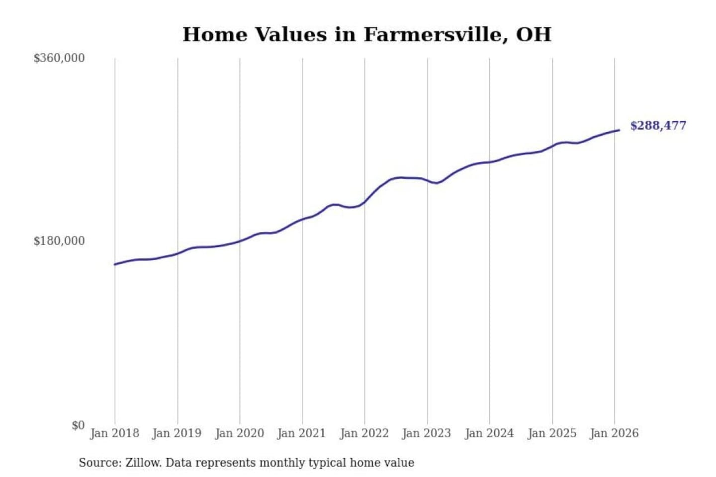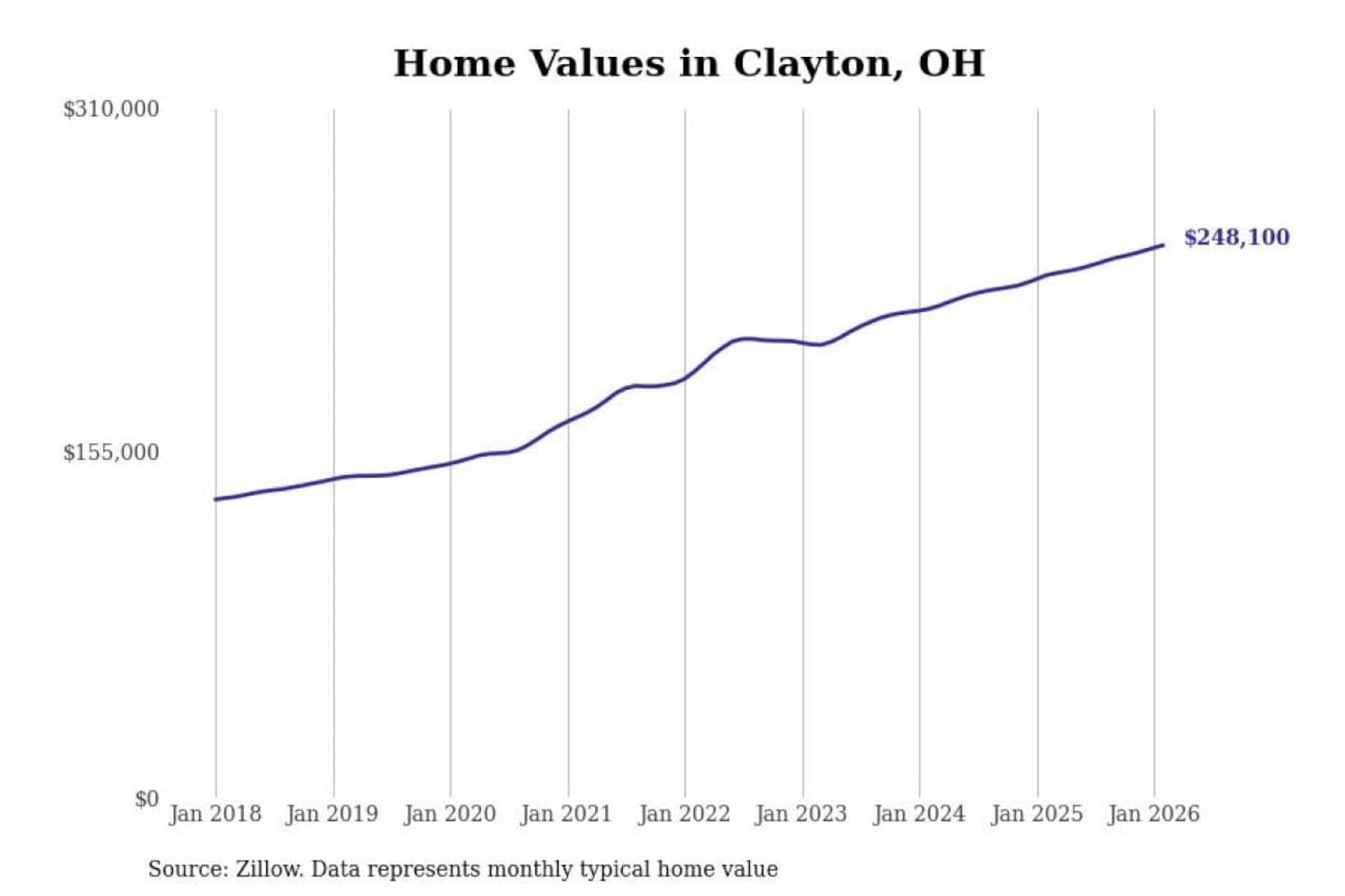 Stacker compiled a list of cities with the most expensive homes in the Dayton-Kettering, OH metro area using data from Zillow. Charts show the monthly typical home value since January 2018.