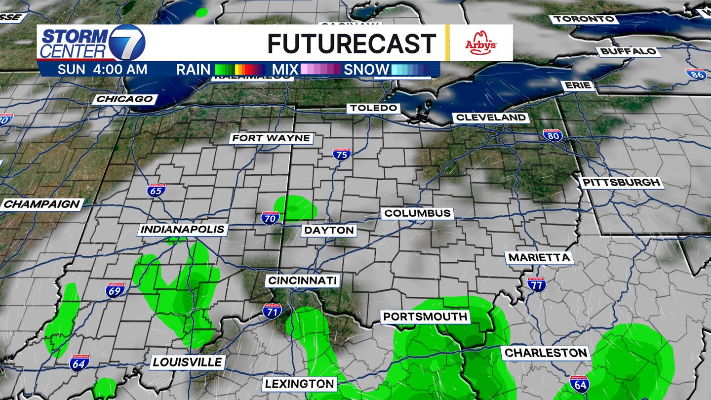 Futurecast is not super excited about the rain chances. However, you will find more clouds than sun for later Saturday and for the start of Sunday. I do expect gradual clearing late Sunday going into Monday.