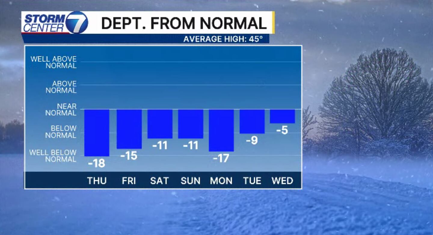 DAYTON — Good afternoon, everyone! Meteorologist Nick Dunn here on this Wednesday afternoon. It is nice to see a little bit of sunshine out there to brighten things up a little bit. However, it is still cold! Temperatures look to stay below freezing for a few more days. In fact, high temperatures are 15 to 20 degrees below where we typically are this time of year.